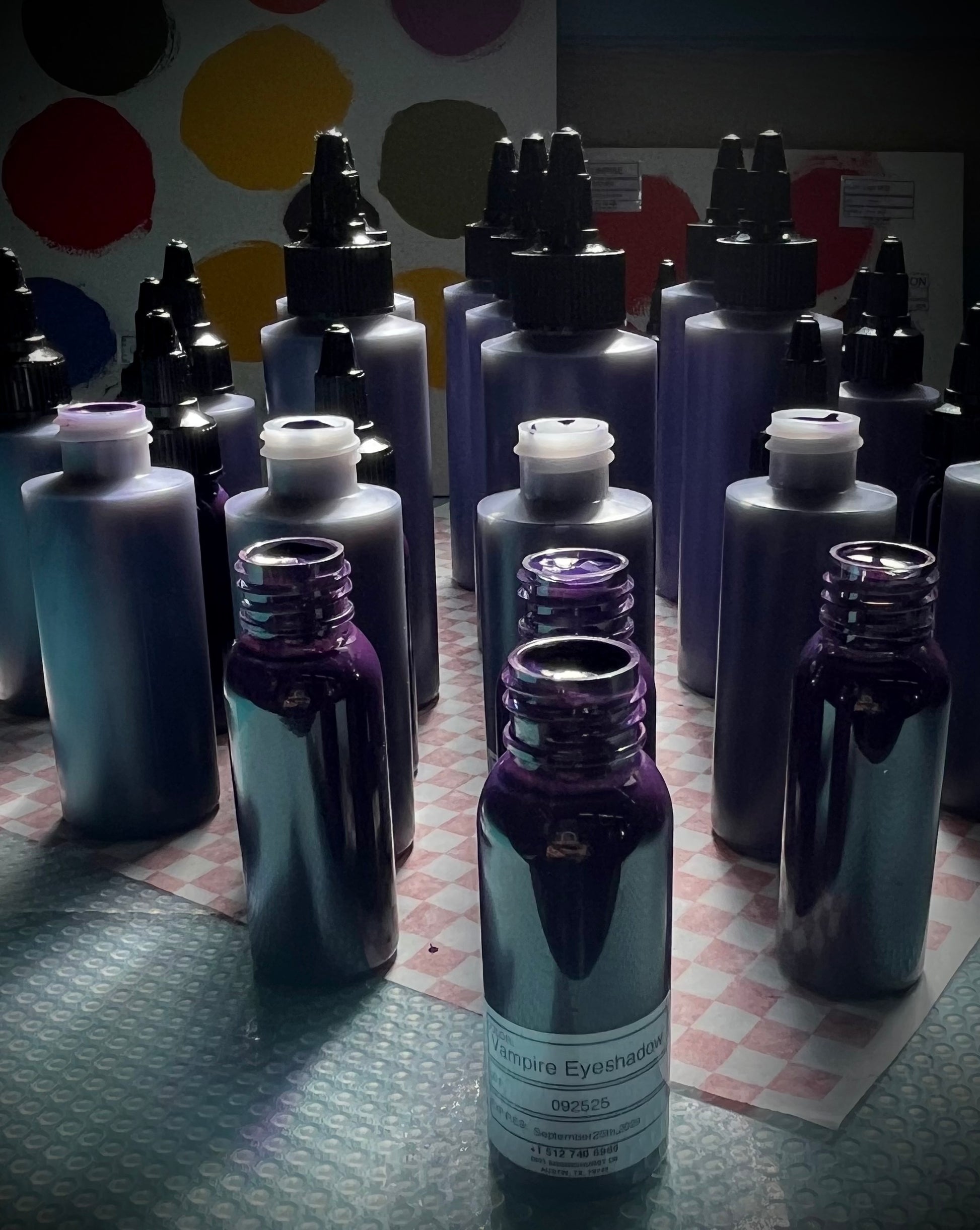 After two years in the making, we have finally completed what Nick would call, vampire eyeshadow. The perfect goth tone, for doing the time warp in Transylvania, or shading pinups in New Hampshire.